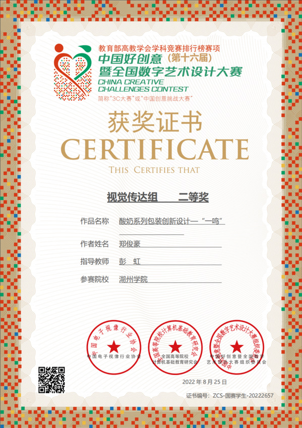 在2022年第十六届“中国好创意”暨全国数字艺术设计大赛中,学校设计学院的参赛作品取得了优异成绩,在国赛中获得二等奖2项,浙江省赛中获得三等奖1项,并获得省赛优秀组织奖和优秀指导教师奖(详见下表)。