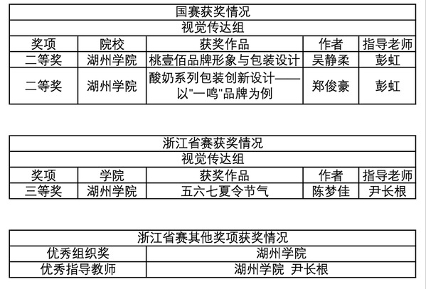 该项赛事学校设计学院是首次参与,设计学院根据学校应用型人才培养定位,注重实践能力培养,一直以来高度重视学科竞赛工作,前期经过精心组织,指导教师利用周末等课余时间耐心、细致地指导学生,历经几个月的创作,设计出众多优秀作品,共评选出135件作品参与浙江赛区的评选,最终在国赛中取得优异成绩。