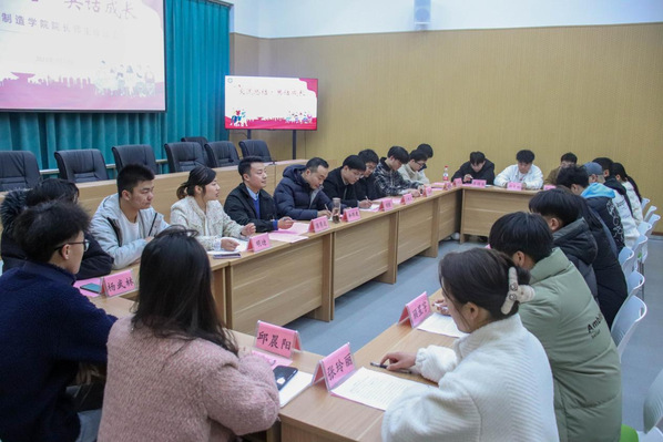 为进一步增强“三全育人”合力、提升学生工作和思政教育效果,2月24日,智能制造学院开展以“交流总结•共话成长”为主题的师生面对面座谈会,智能制造学院院长、党委副书记、全体辅导员、分团委、学生会主要干部以及班级学生代表共计25人参加本次座谈会。