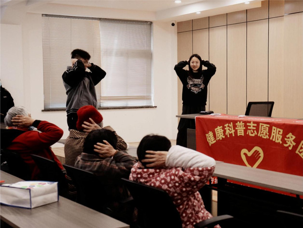 鉴于高血压等常见病患病年龄逐渐年轻化的现象,学院组织了护理专业学生在碧浪湖社区开设“爱心驿站”,并为社区里的中老年人进行养生讲述并为老人们答疑解惑,连柠檬是早上吃还是晚上吃这样琐碎的问题,都耐心详细地做出了解答。在养生讲述环节全部完成后,志愿者们又向老人们普及全国爱耳日这一节日并介绍了爱耳的重要性,还向老人介绍了五步疏耳操,为老人们今后的爱耳护耳提供了有力的帮助。