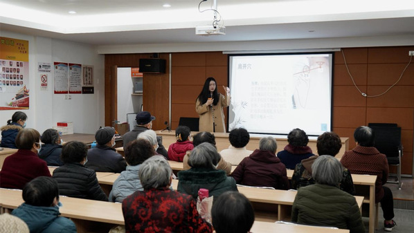 3月1日下午两点,生命健康学院志愿者们来到港湖社区,为社区的老人们开展了一场“养老爱老”科普志愿活动,学生志愿者孙晓丽作为主讲人上台为现场的老人们介绍身体上的重要关节穴位及其日常保健方式。她讲解完后,现场的志愿者又进一步为老人传授了推拿技能、肩颈保健、艾灸的理疗养生调理方式,嘱托老人们在日常生活中注重自我健康保健,将学到的养生知识运用到生活。
