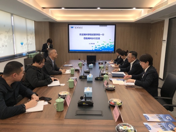 3月10日下午,经济管理学院一行前往杭州银行湖州分行开展访企拓岗交流工作。杭州银行湖州分行行长王中益、人力资源部副总经理林峰以及相关同事和校友代表参加本次座谈交流会。