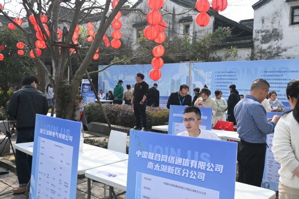 3月5日下午,设计学院与朝阳街道在小西街联合举办了“乐业湖州 共富班车”春季大学生及各类岗位招聘会。
