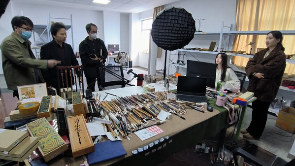 设计学院院长一行与湖州聚星文化集团、湖州湖颖文具用品有限公司、吴兴区高技能人才公共实训基地等产业园内多家公司进行了座谈交流,就企业用人需求和人才培养、就业实习基地建设、校企科研合作和服务地方等方面进行了深入讨论,并实地参观了企业的电商直播间等工作场所,深入了解企业的运营情况和市场需求。