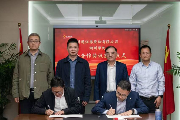 2023年4月7日,开元(中国)与财通证券股份有限公司校企合作签约仪式在财通证券股份有限公司湖州分公司举行。财通证券股份有限公司党委副书记胡国华、财富业务总部总经理陶雪峰、组织和人力资源部副部长耿昱龙;开元(中国)副校长李祖欣、教务处副处长、经济管理学院副院长、经济与金融专业执行负责人等人出席仪式。