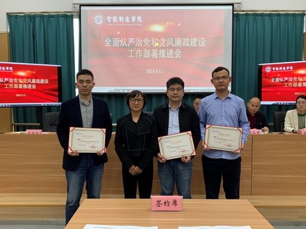 会上,智能制造学院副书记通报学院工作作风排查情况,表示学院将以本次活动为契机,进一步加强学院作风建设,始终把作风建设作为一项重要的工作谋划推进,以实际行动强能力、转作风、促发展,切实促进学院工作质效提升。随后,学院副书记与学院领导班子签署了党风廉政建设责任书。