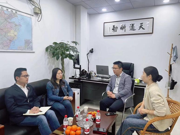 随后,两位老师前往新天地创业园进行考察调研。在园区负责人沈婷婷的带领下,两位老师实地参观了创业园的办公环境,双方就大学生创业流程和相关扶持政策等进行了深入友好的交流。