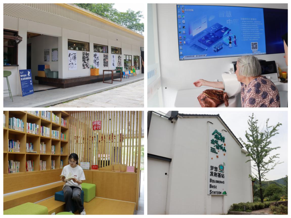 目前,“千万工程”正迈向“千村未来,万村共富”新阶段,余村的未来乡村建设正在如火如荼地开展起来。对于吸引万名乡贤、青年回乡创业的思考,余村依托独特的生态优势,立足优越的生态资源上打造“大自然工位”吸引青年人前来旅游、生活、创业、办公。同时创建乡村青年人才社区“青来集”,推出“余村全球合伙人计划”广招人才。一位“余村全球合伙人”梦想发射基站的工作人员说道:“梦想发射基站类似于创业孵化基地,我们招贤纳士,共同建设未来余村,现在许多公司企业均已完成落地建设,多数已在乡村青年人才社区创业办公。除公司企业外,余村还设有许多青年空间,比如咖啡吧、音乐酒吧、网红打卡点等,未来余村将继续引进青年人才,为乡村建设注入青春力量。”