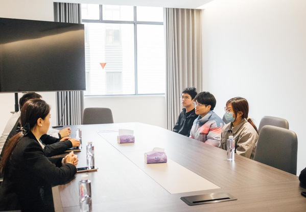 学院一行首先来到美智健(湖州)生物科技有限公司,公司相关负责人对他们进行了接待,并结合视频和多媒体向同学们介绍了公司的发展历程、运营现状、办公环境和设备设施等情况。